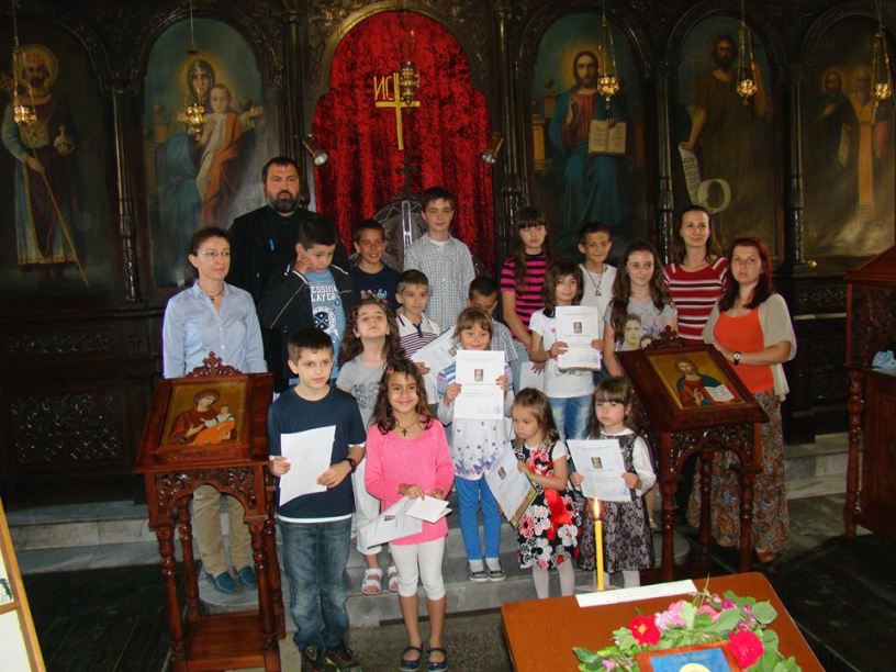 На 25 май с мило тържество закрихме учебната година в неделното училище при храм „Св. цар Борис“. Децата от първа група изнесоха рецитал, а с децата от втора група разиграхме викторина. Въпросите не ги затрудниха, на всички отговориха безпогрешно! За положените постоянство и старание, всяко дете получи свидетелство за участие в неделно детско училище. Свидетелствата раздаде председателят на храма свещеноиконом Добромир Георгиев. За участниците имаше подаръци, а накрая всички се почерпихме със сладолед.