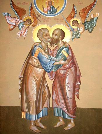 „…Ти, Който Единствен знаеш какво е в сърцата, прие техните страдания и смърт за нещо повече от всяко всеплодие.“ – така се обръща към Господа кондакът на светите първовърховни апостоли Петър и Павел. Велико изречение, което явява затруднението на проповедника. Какво да разкажа за любовта на тези, в чиито сърца не мога да надникна? Още повече, че за мен представлява затруднение да „видя“ дори собствения си вътрешен живот. И как да похваля тези, чиито усилия са зачетени за повече, от който и да е друг плод на света? Нима не съм заплашен от това думите ми да се окажат празни приказки на човек, който не е очевидец на станалото, но обича да се опиянява от собствения си говор? Дистанцията между тези, които пребивават във вечния живот и любовта на Бога – и нас, които живеем в посредствеността на последните, лишени от топлина времена, изглежда съкрушаваща. Те там, а ние тук – отдалечени не толкова по място, колкото по чистотата на сърцата.