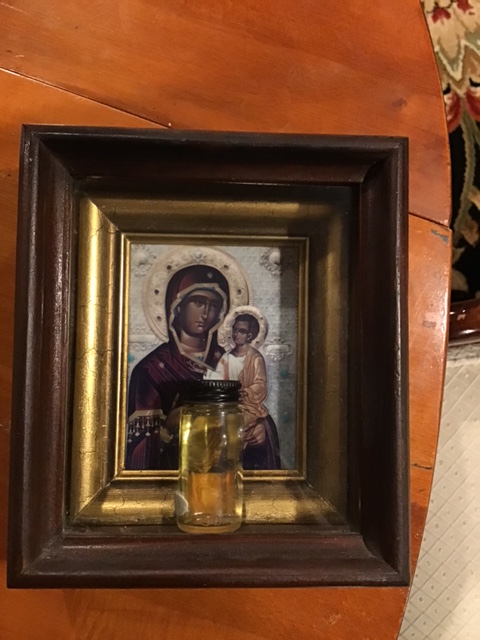 С мъжа ми направихме фотокопия на чудотворната Иверска икона, хартиени иконки, за да ги изпратим в Русия. Цяло стекче с такива иконки направихме, приготвихме ги за изпращане, а до тях беше сложено в малка кутийка от филм-лента за фотоапарат памуче, напоено с миро от чудотворната икона. Кутийката беше плътно затворена, за да не изсъхне памучето.
