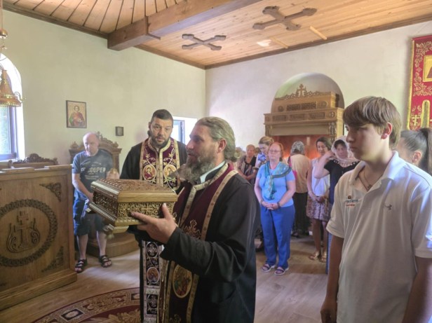 Отец Ясен Керчев заедно с монасите от манастира и енориашите прочетоха акатиста към св. великомъченица Марица и се поклониха на мощите й.